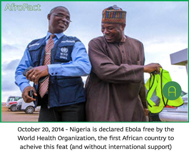 AfroFacts tweeted: One Year ago, Nigeria was declared Ebola-free ... the first African country to achieve this feat. ??🏾πŸ’ͺ🏾 #AfroFact